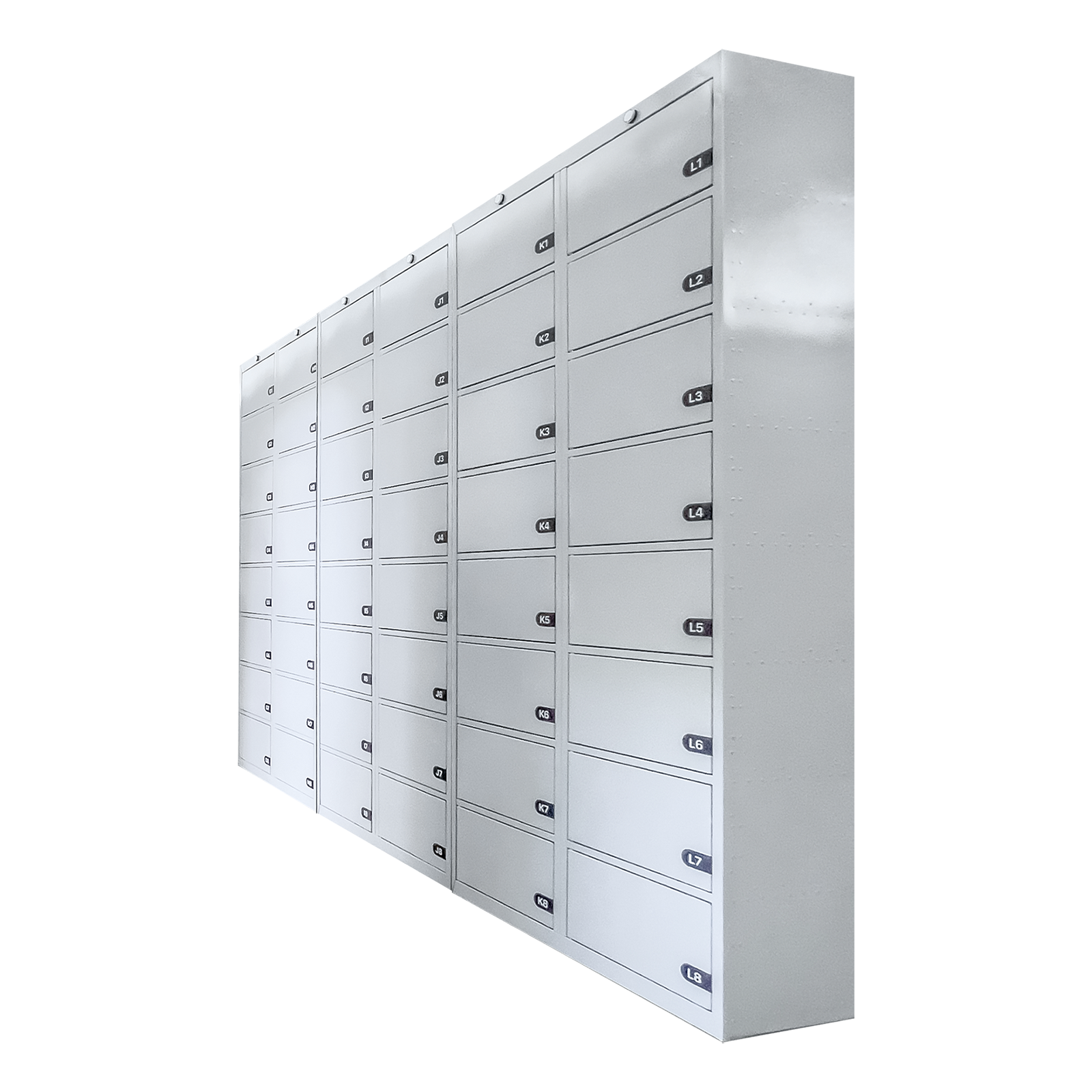 - Dispenser Cabinet: Multi-compartment locker system. Separate RFID antenna is installed in each compartment, so the contents of each compartment can be readed separately. The user can access the compartments with the help of an automatic lock after the identification defined on the terminal unit. The access logic can be freely defined in the system, in the default case the quantity and type of items that can be requested by the given user must be specified in advance. The system only allows access to compartments containing this specified type of content. The items taken out from compartments automatically registered as a handover in database.